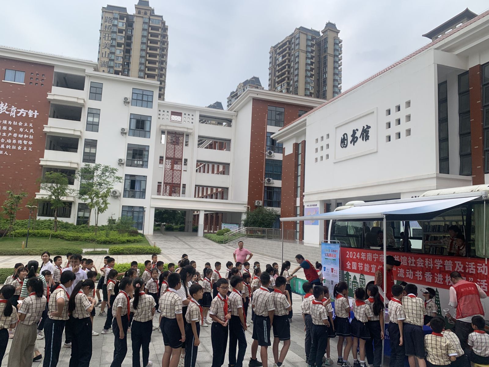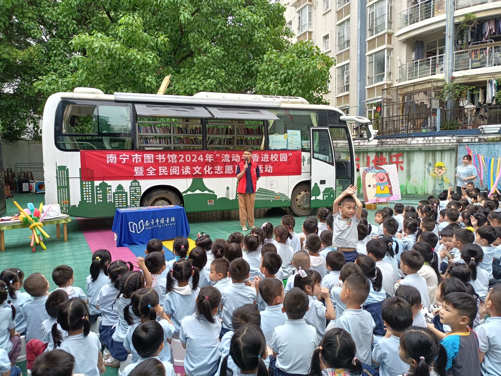 淡淡浅夏,萱草新花,在阳光明媚的五月,南宁市图书馆走读巴士分别于5月6日、15日、23日、31日先后走进青秀区春蕾幼儿园、良庆区六里路小学、宾阳县新桥镇民范学校、横州市平马镇丁村,开展流动书香进校园、进乡村和文化志愿服务系列活动。