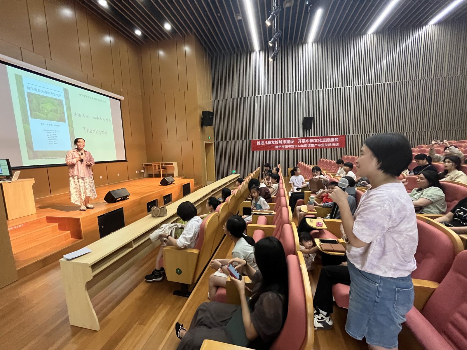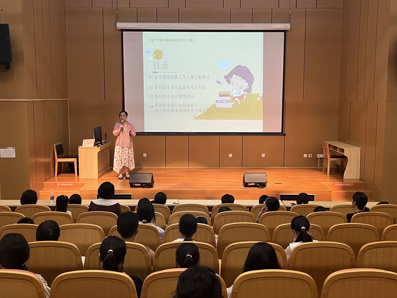 南宁市第四届原创绘本设计大赛火热开启,为了更好地指导未成年人参赛,指导亲子家庭增强美育技能,提升妇女儿童的阅读推广专业技能,推进儿童友好城市建设,由南宁市图书馆主办的“绿城讲坛·亲子美育”原创绘本设计制作培训讲座于2024年7月28日上午成功举办,吸引了约40组家庭参加。