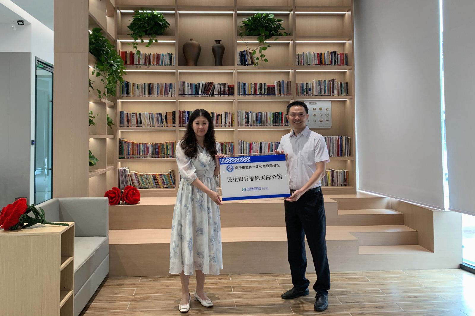 民生银行丽原天际图书分馆是南宁市图书馆与民生银行南宁分行合作共建的第六家银行分馆,位于青秀区民族大道12号丽原天际一楼、中山路钟鼓楼旁,已设计装修为银行业务与公共阅读相融合的新型文化空间,图书阅览区面积约100平方米,沿墙配置书架、阅览桌椅和沙发,环境宽敞明亮,有银行专职人员负责管理;主要服务对象为到该支行办理业务的市民、朝阳商圈以及附近中小学,阅读需求旺盛,地理位置稳定。该分馆的建立充分依托市图书馆文献资源丰富和中山路老街区旅游景点核心区域位置的优势,将银行业务大厅集成阅读学习、文化交流等公共文化服务功能,融入民生银行“书香满民生”服务理念,在为市民提供专业金融服务的同时,打造一个舒适、便利的新型文化阅读空间,让市民享受更加便捷的公共文化服务。