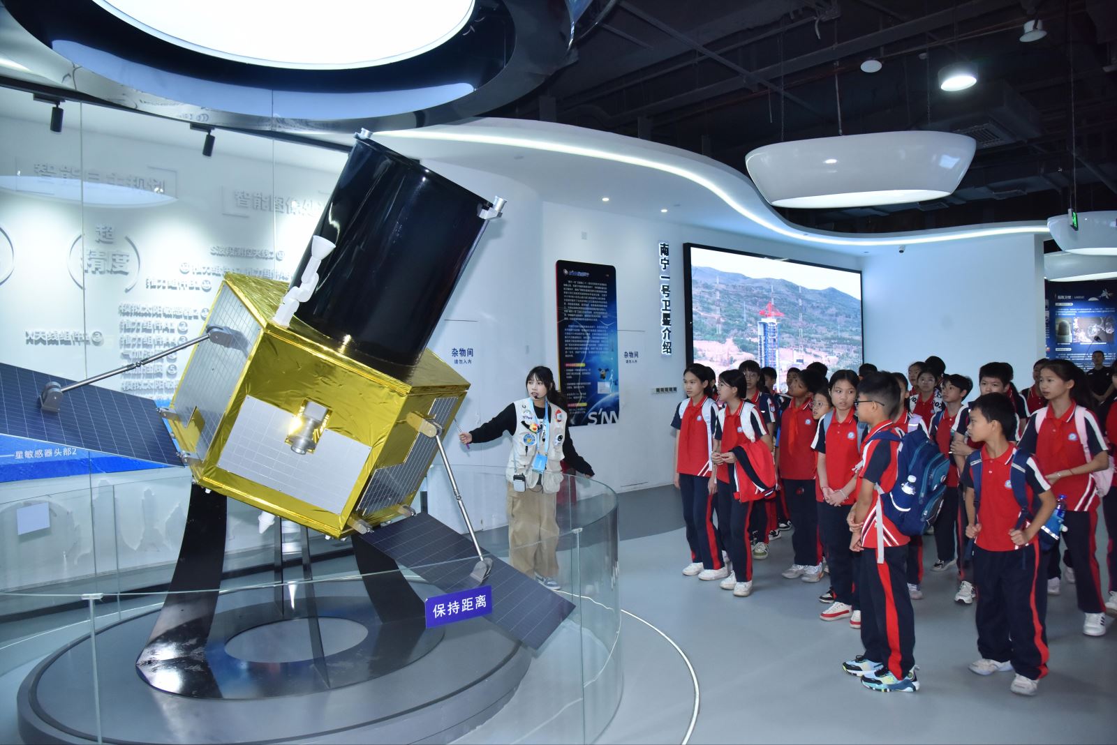 在广西新媒体中心星耀南宁科技馆,孩子们在研学导师的组织下安全有序地进行参观,一边认真聆听讲解员的介绍,一边在科技知识的海洋中尽情遨游。在遥感馆,借助“南宁一号”卫星,孩子们亲身体验实景三维场景,观察“南宁一号”卫星模型的运行轨迹,了解卫星的应用场景与科学价值。在航天馆,通过沉浸式场景与互动体验装置,孩子们聆听讲解员讲解火箭结构,演示火箭的发射过程与航天飞行模式,还在老师的带领下自己动手制作火箭模型。在爱国主义国防科技教育中心,孩子们仔细观察战斗机、坦克等国防兵器模型,观摩枪械组装,对国防知识有了更直观更深刻的认识。