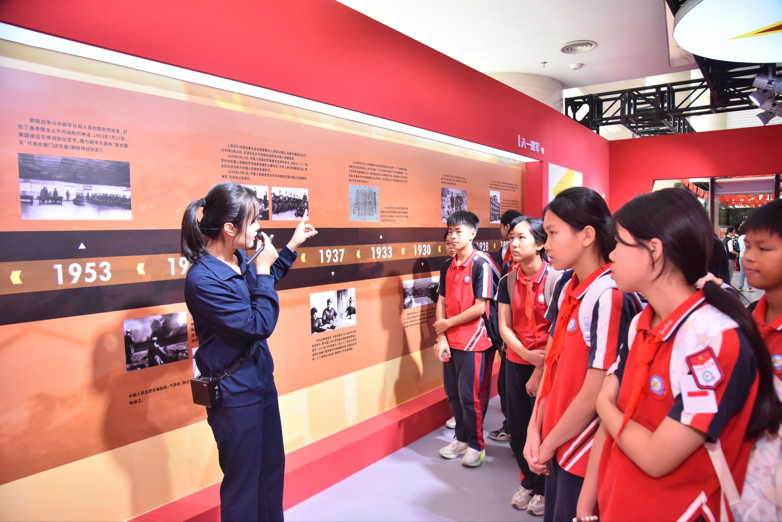 来自南宁市永华学校的30名外来务工子弟学生参加活动,在广西新媒体中心星耀南宁科技馆探索科技知识,近距离观察“南宁一号”卫星模型运行轨迹、沉浸式互动体验火箭飞行和航天发射过程;在爱国主义国防科技教育中心参观战斗机、坦克等国防兵器模型、零距离触碰军用装配……一场生动、有趣的爱国主义和国防科技科普教育研学活动让外来务工子弟学生们感受到心潮澎湃的爱国热情与为祖国未来拼搏的前行力量。