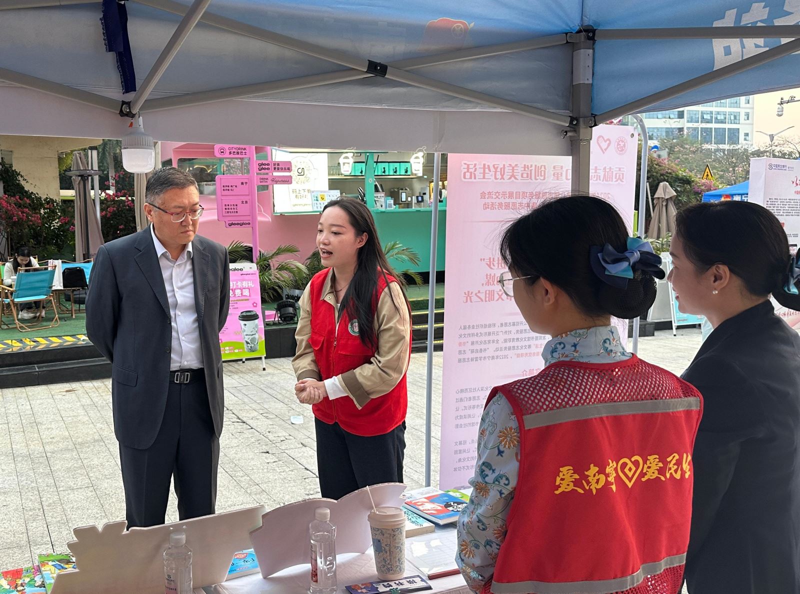 在主舞台“青年说志愿”环节,青年志愿者代表介绍展示了由中国民生银行南宁分行、共青团南宁市委和南宁市图书馆共同建设的“民生驿站”这一为广大群众搭建的公益志愿和市民服务平台;在“志愿服务主题市集”活动现场,南宁市图书馆文化志愿服务队开展“书香绿城·美好生活”文化志愿服务活动和“知识交换站”图书捐赠交换活动两项服务项目,并通过易拉宝、门型展架、服装、队旗和队徽等多种形式,生动展示南宁市图书馆文化志愿服务队的团队风采。展示内容涵盖服务队的制度建设、队伍建设、项目建设以及文化志愿服务活动成果等。现场还进行了志愿者的招募工作,并通过互动问答等方式积极吸引新成员加入。