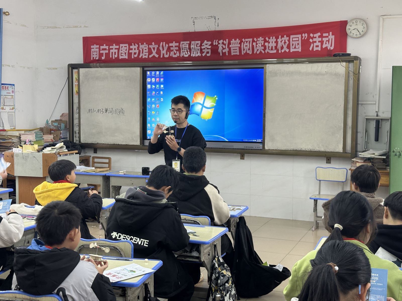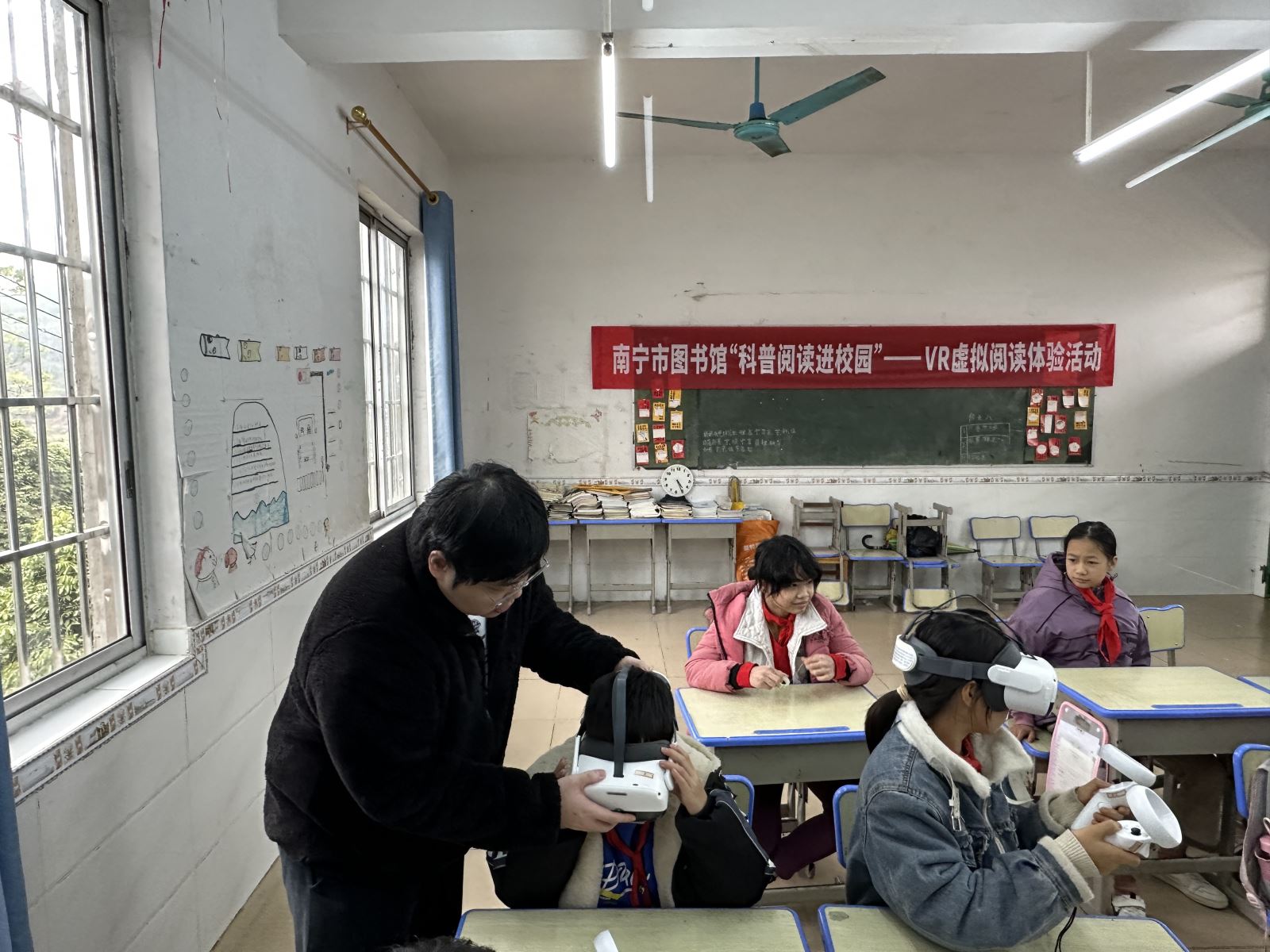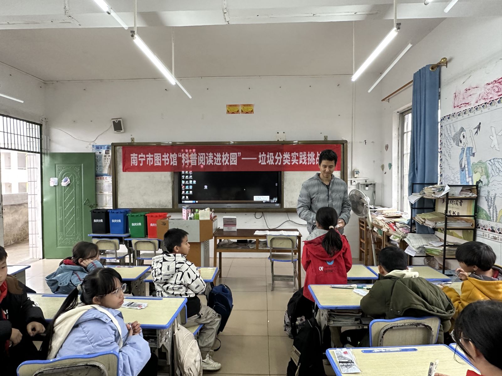 为深入学习宣传贯彻党的二十大精神,推动党的二十大精神下基层,充分发挥公共图书馆的社会服务职能,助推乡村振兴战略实施,发掘乡村文化需求并主动嵌入到乡村教育和文化服务中去,南宁市图书馆阅读推广部于2024年12月27日前往横州市百合镇同菜村村委小学,开展文化志愿服务科普阅读进校园活动。