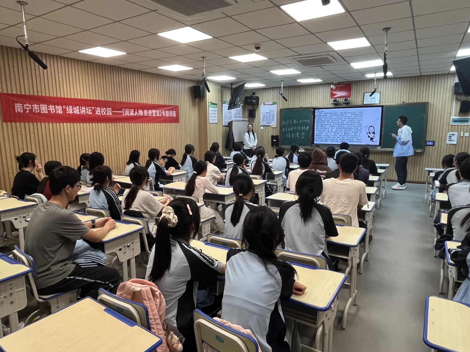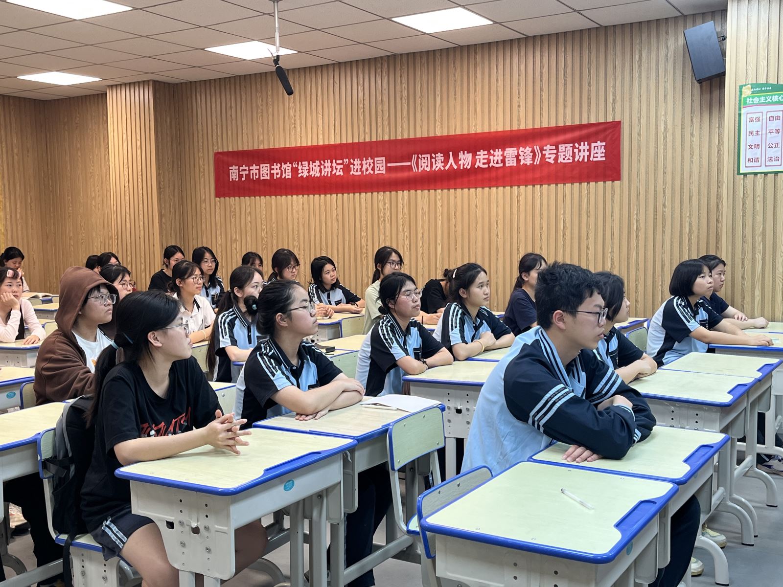 随后,“绿城讲坛”如约而至。南宁市图书馆少儿部副主任黄珂担纲主讲嘉宾,为师生们带来了一场题为“聆听雷锋故事,传承雷锋精神”的专题讲座。黄珂副主任结合馆藏书目,用生动的语言和感人的故事,将雷锋精神根植于青少年学生群体中,激发了学生们对雷锋精神的认同与传承。