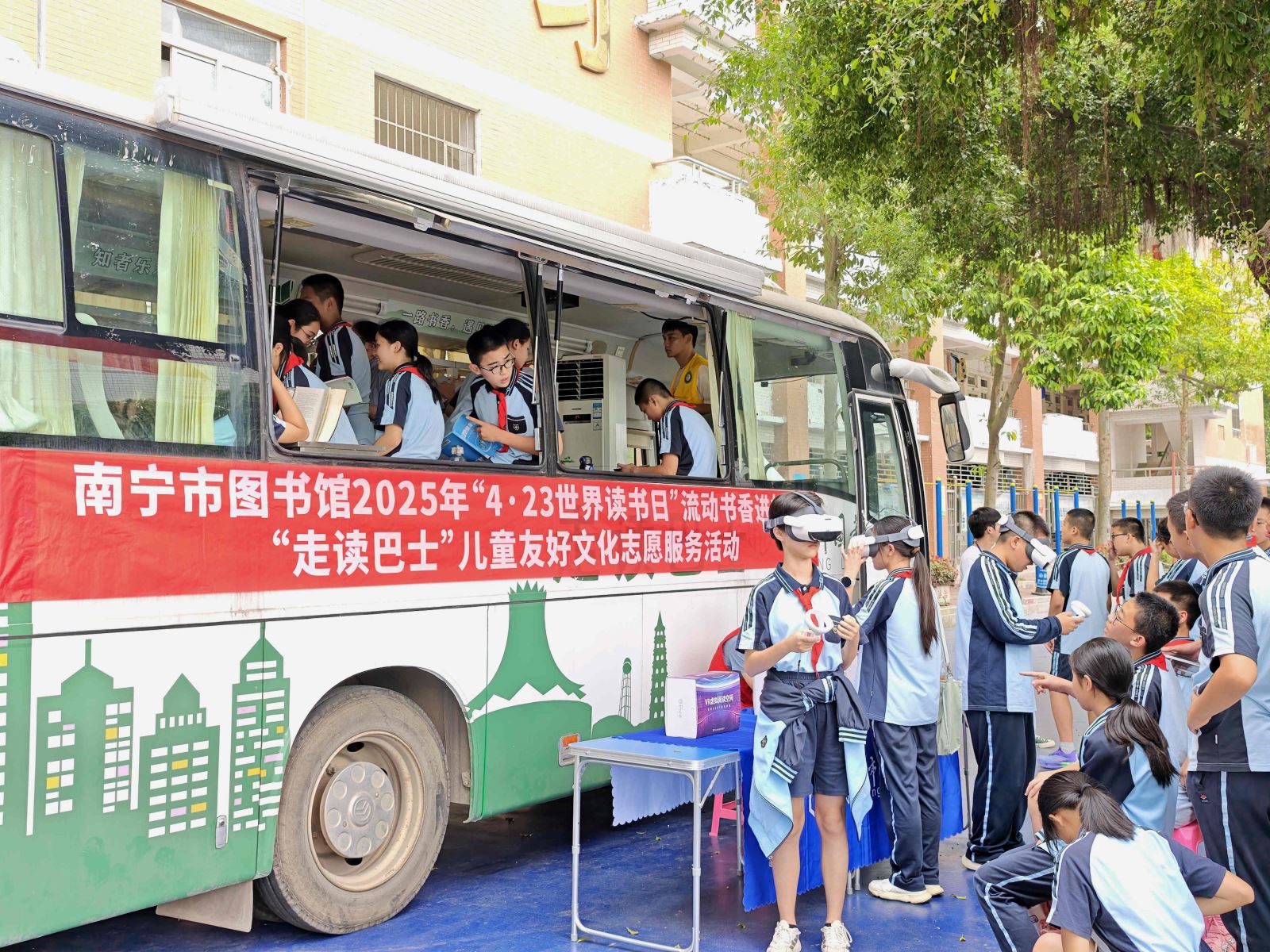 为深入贯彻落实全民阅读战略,推动儿童友好文化志愿服务,南宁市图书馆以“走读巴士”为载体,让优质公共文化服务走出馆舍、走进校园。在“4・23世界读书日”前后,南宁市图书馆2025年流动书香进校园“走读巴士”儿童友好文化志愿服务活动开启,为不同年龄段学生带来丰富多元的阅读体验。