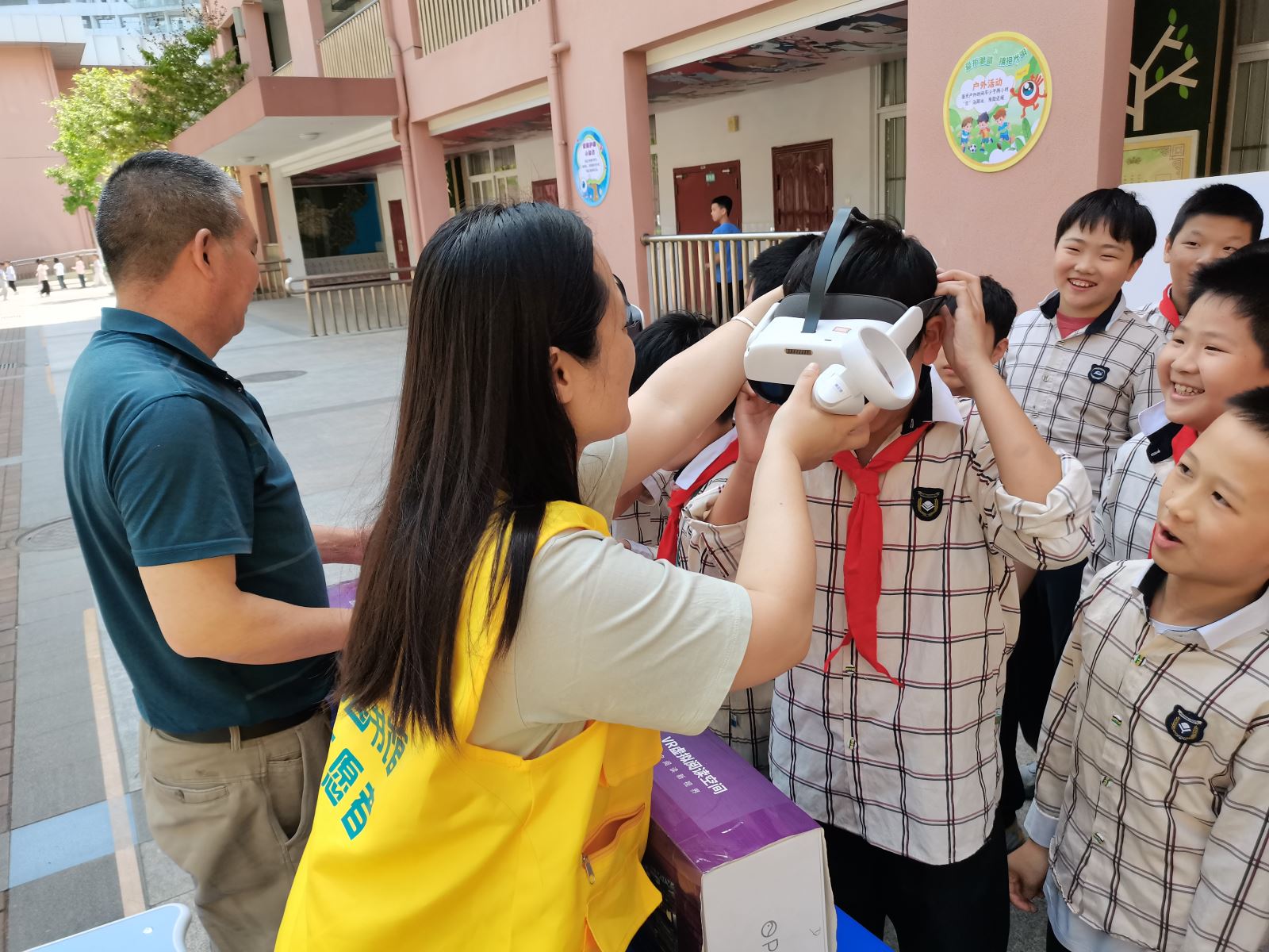 除了传统的图书阅览,南宁市图书馆文化志愿服务队还带来了新颖的VR虚拟阅读设备。志愿者们耐心细致地指导学生操作设备,帮助他们体验虚拟阅读的独特魅力。戴上VR眼镜,孩子们仿佛置身于书中的奇妙世界:在恐龙时代与霸王龙“面对面”,跟随探险家穿梭于神秘的丛林,在浩瀚宇宙中自由遨游。新奇的阅读方式极大地激发了学生们的阅读兴趣,现场不时传来孩子们兴奋的惊叹声和欢快的笑声。
