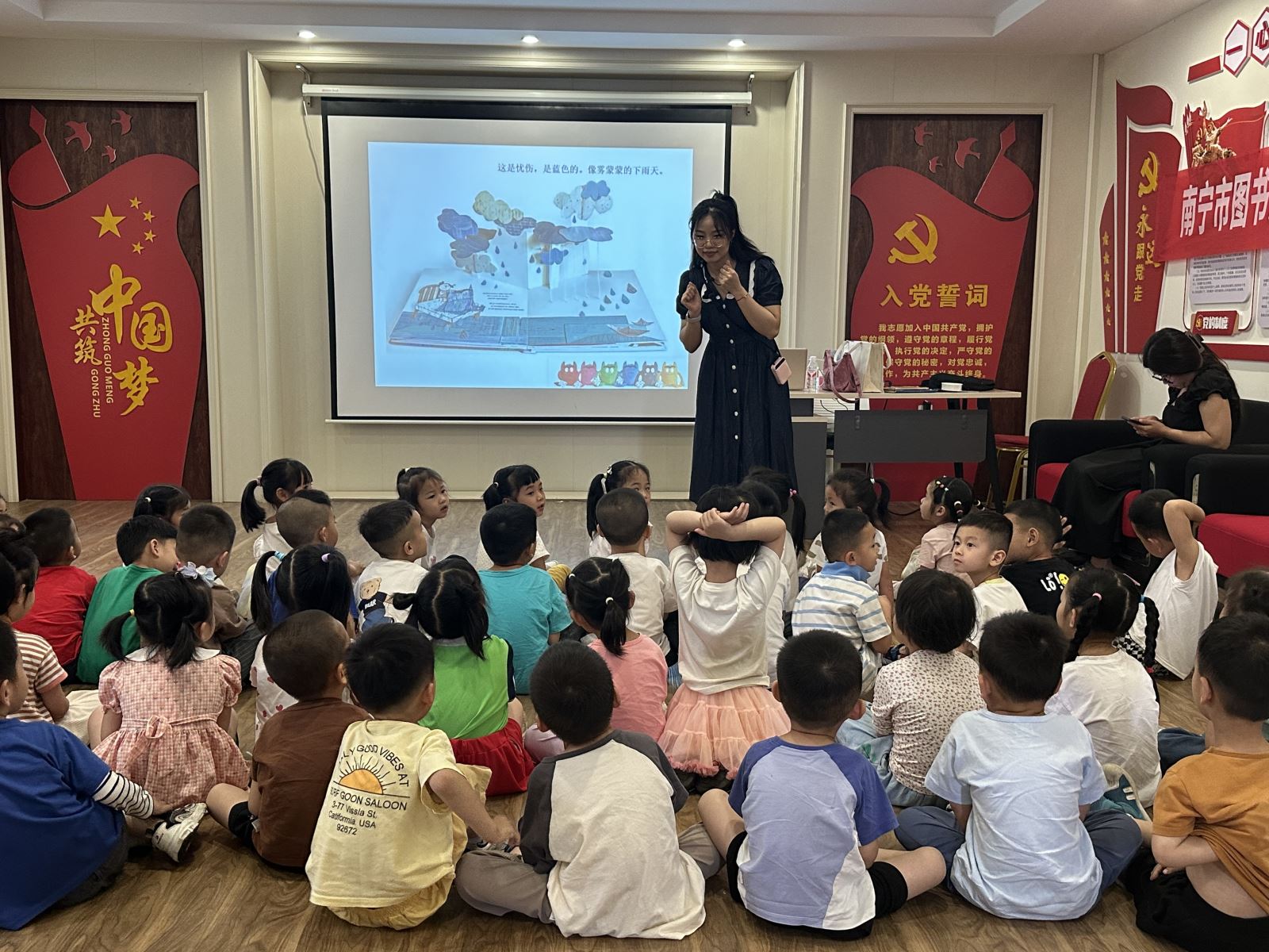 与此同时,“童阅种子”绘本故事会在教室温馨开讲。文化志愿服务队的老师化身故事大王,用生动活泼的语言和夸张的肢体动作,为幼儿园中班的小朋友们分享绘本故事。精彩的故事,让孩子们听得津津有味,积极举手与老师互动,现场气氛热烈而温馨。
