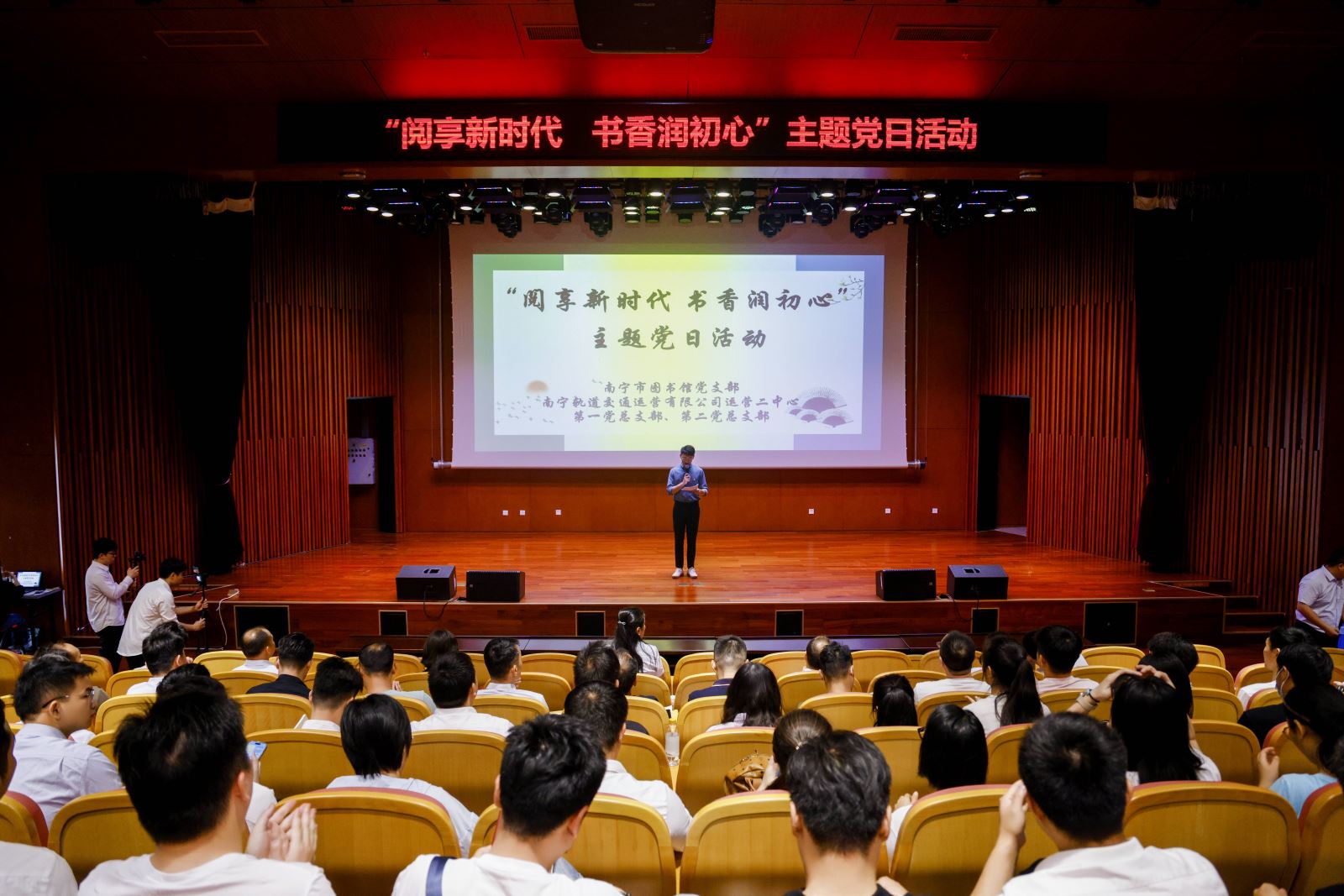 为进一步加强党员的精神文明建设,丰富党员的文化生活,营造爱读书、读好书、善读书的浓厚氛围,引导广大党员养成良好的读书习惯,4月18日,在第30个世界读书日来临之际,南宁市图书馆党支部联合南宁轨道交通运营有限公司运营二中心第一、第二党总支部开展“阅享新时代 书香润初心”主题党日活动,两个单位5个党支部约200名党员参加了本次活动。