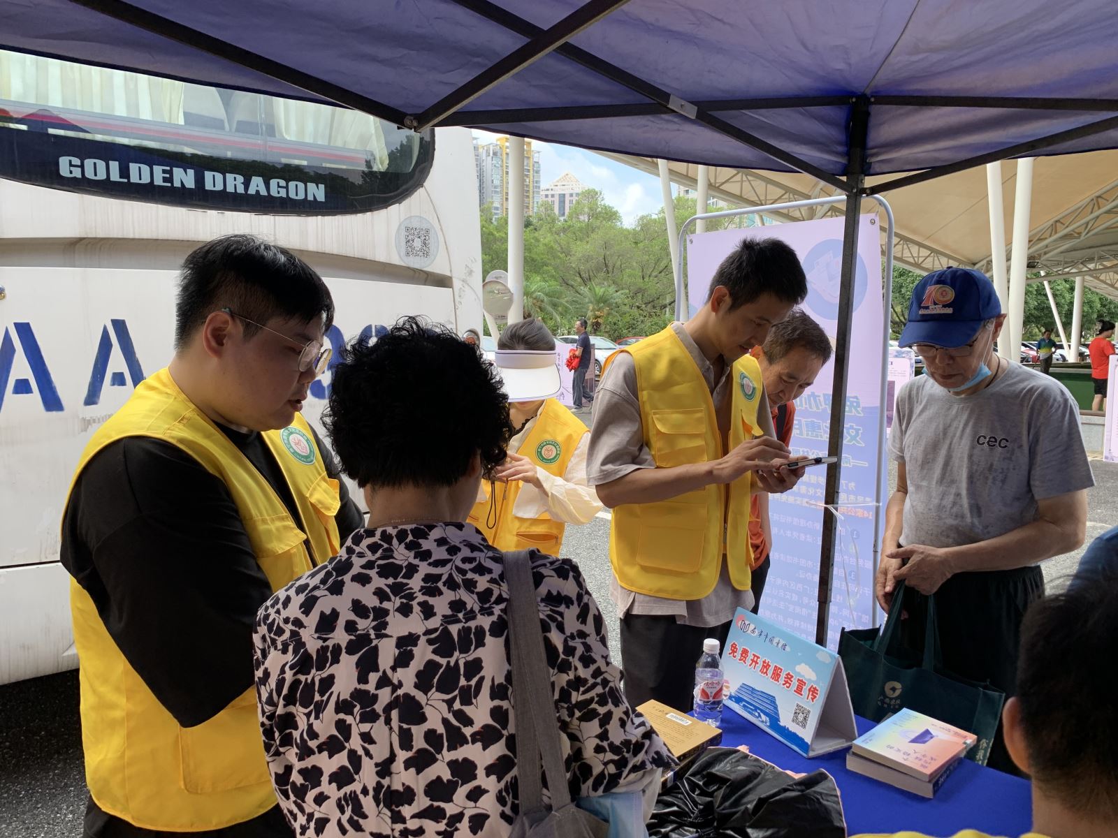 5月21日上午,活动来到南宁市老年大学。活动现场,现场免押金办理借书证的服务备受老年学员欢迎。只需凭身份证,就能轻松办理借书证,志愿者们还热情地协助老年学员使用手机操作图书查询、电子书下载阅览等功能,开展“智慧助老”服务,让老年学员也能紧跟时代步伐,享受数字化阅读的便利。