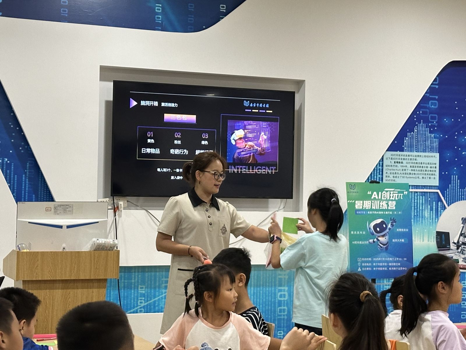 2025年7月30日,南宁市图书馆“绿城学堂·AI创玩π暑期训练营”在孩子们的欢声笑语中顺利结营。本次活动由南宁市图书馆联合帆书南宁运营中心共同主办,以“文化+科技”为特色,通过四期趣味化、场景化的AI课程,为青少年揭开人工智能的神秘面纱,助力科学素养与创新能力的提升。