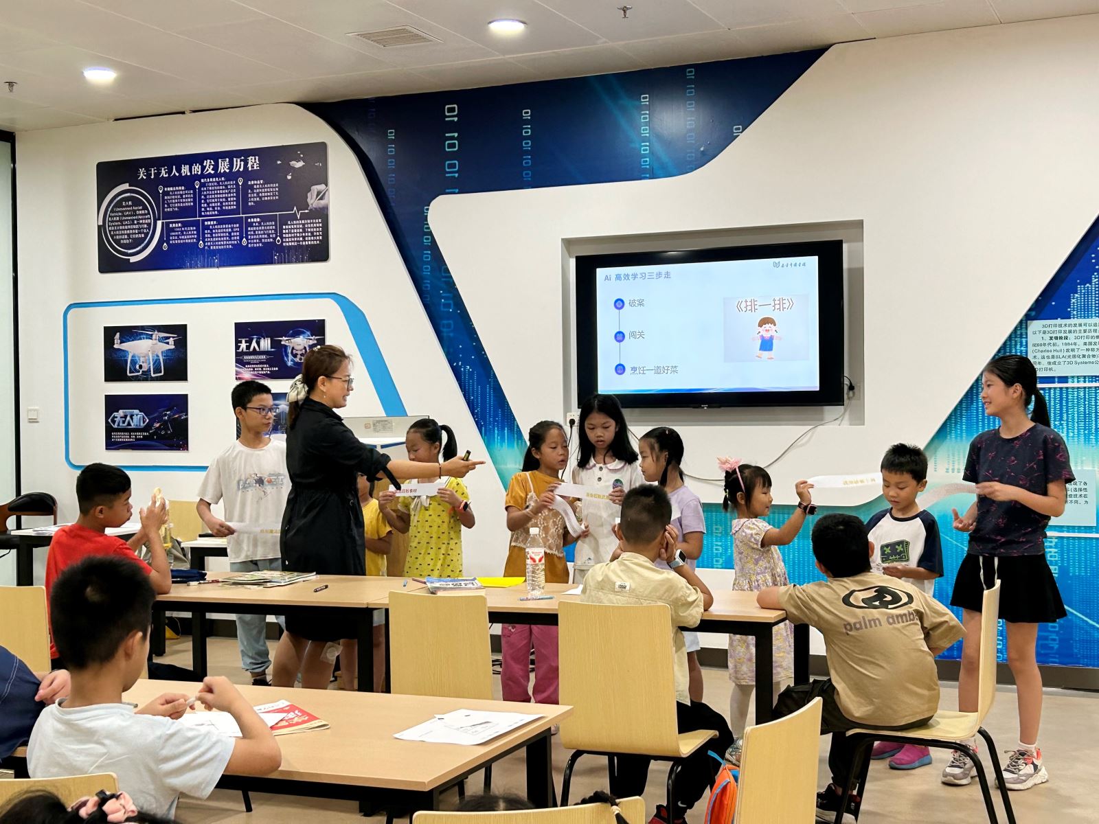 7月9日首期课程以“AI超能力鉴定大会”拉开序幕。孩子们通过“科技变装秀”快速区分AI、AR、VR技术,在“人机PK擂台赛”中见证AI与传统搜索引擎的差异,了解到“AI是创造者而非搬运工”。最令人兴奋的是“10分钟创世计划”,孩子们现场指挥AI生成诗歌、插画,甚至设计未来城市,一位小朋友还举着作品自豪地说:“AI真的能听懂我的想法!”