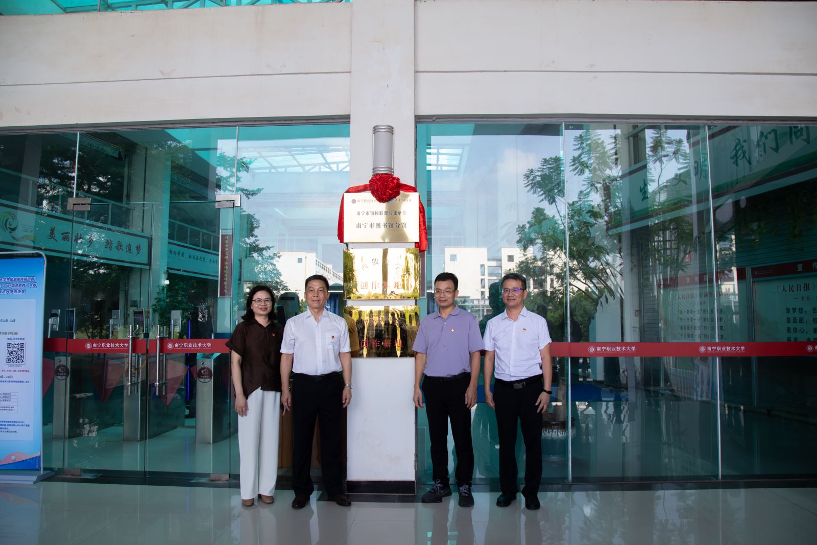 下午3时30分,挂牌仪式第二阶段在南宁市图书馆举行。南宁职业技术大学图书馆馆长王永宁与南宁市图书馆馆长张晓剑共同为“南宁职业技术大学图书馆分馆”揭牌。仪式后,南宁职业技术大学图书馆代表参观了南宁市图书馆公共服务区域与文化活动空间,双方就文献流通、数字建设、阅读推广活动等展开务实交流。