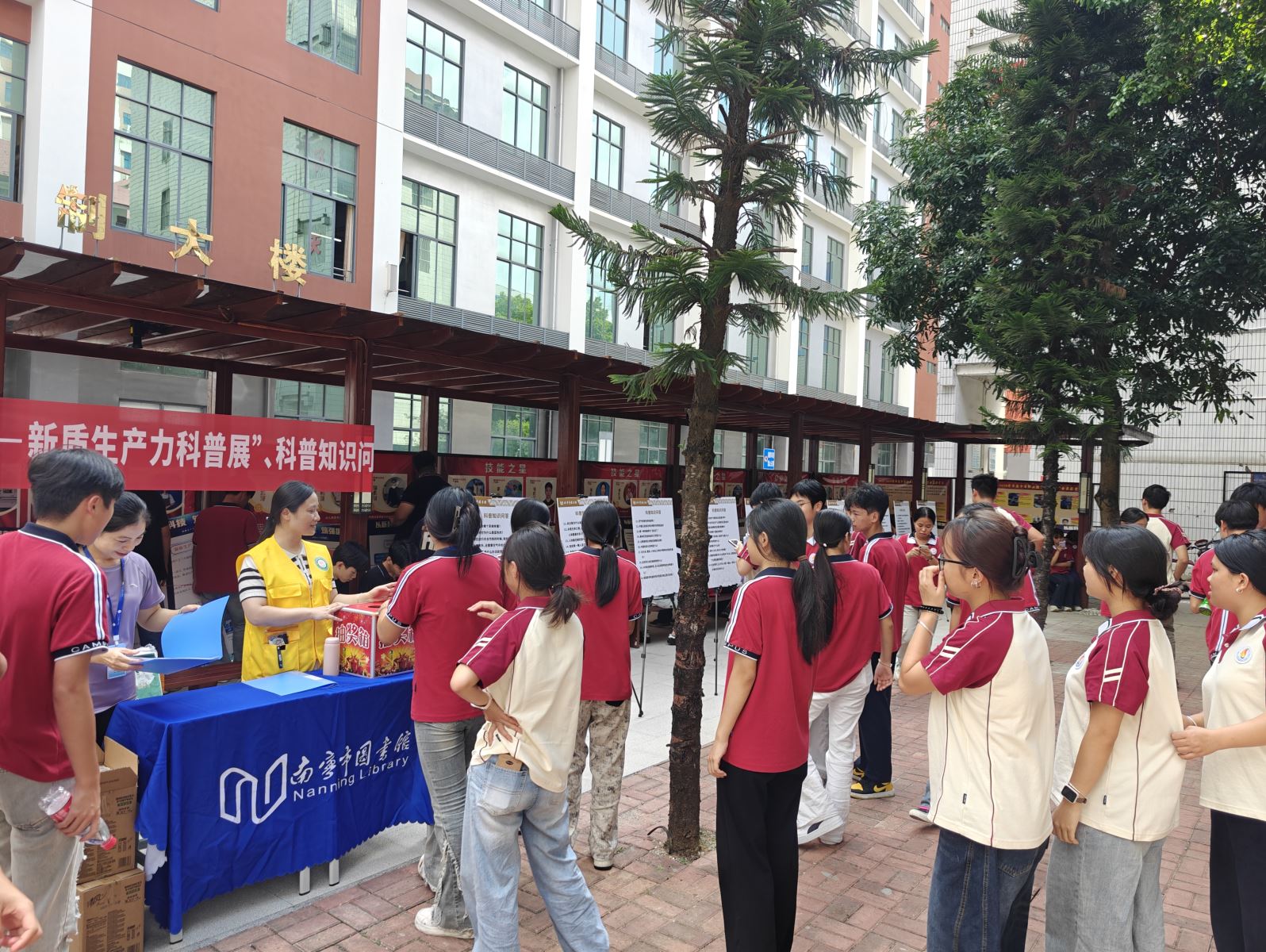 与此同时,由市图书馆精心策划的“新科技筑强国梦——新质生产力科普展”也在校园内同步展出。图文并茂的展板系统介绍了新质生产力的概念、核心驱动力及其对国家未来发展的深远意义,吸引了众多师生驻足观看、热烈讨论。而现场的科普知识问答区域,更是将活动气氛推向高潮。同学们踊跃挑战,在轻松愉快的互动中巩固了所学知识,展现了良好的科学素养。