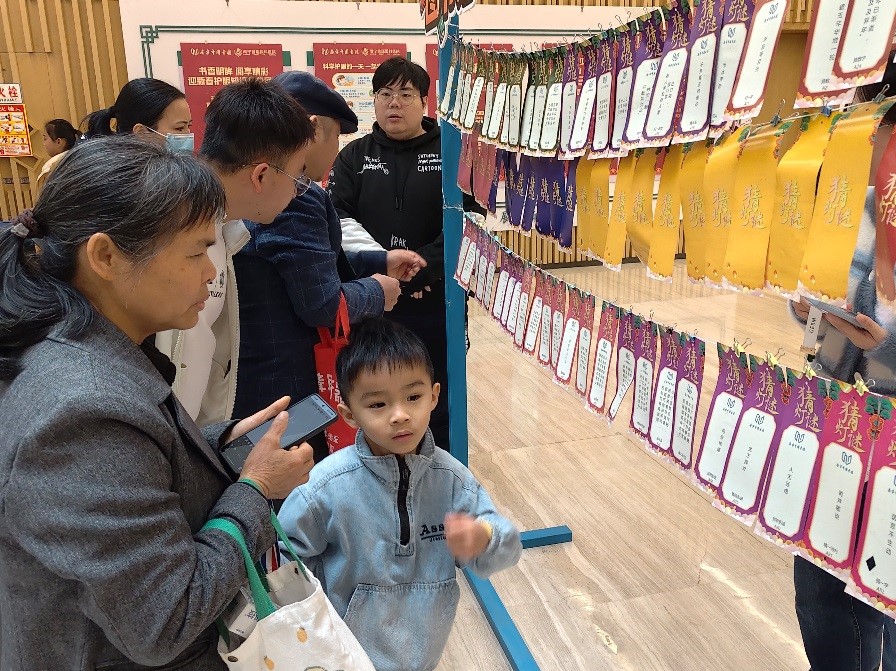 与此同时,“欢喜灯谜迎新年”区域人头攒动,百余条灯谜涵盖诗词、历史、生活常识等内容,读者们或低头沉思,或热烈讨论,猜中者喜获新年礼物,现场掌声不断。