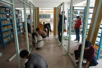 伴着一路的春风,10点30分我们准时到达了“茉莉花之乡”横县百合镇文化体育中心,百合镇的站长及流通点的8位同志已经在此等候多时并热情接待了我们。之后,在馆长贺南潮的带领下,市图的10位员工不顾一路坐车的辛苦,在短短一个小时内把书架全部安装、摆放到位,让百合镇群众看到了一支业务强、服务优的队伍并受到了称赞。