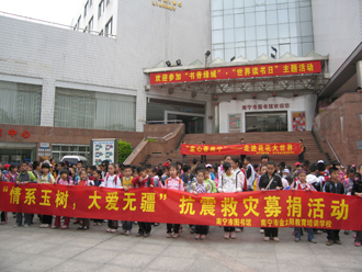 2010年4月25日上午,南宁市图书馆前广场举行了“世界读书日”系列活动之“情系玉树 大爱无疆”募捐仪式。