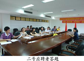根据南宁市事业单位公开考试招聘面试工作的相关要求,8月9日下午,南宁市文化新闻出版局副局长覃绍维、党办副主任黄小萄、社文科副科长谢榭、南宁市图书馆馆长贺南潮、副馆长李霞、办公室主任廖集光、采编部副主任陆伟环组成了考官小组,对报考我馆的应聘者进行了面试。