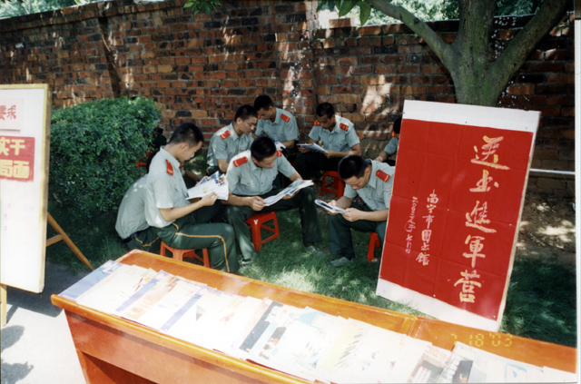 为充实部队新建图书馆的书源,丰富广大武警官兵的业余文化生活,市图为支队送上了数千册图书和内容精彩的板报、挂图以及猜谜游戏等,受到了部队200多位官兵的欢迎和喜爱。揭牌仪式上,市图鞠小平副馆长和支队李松林副支队长代表双方互签了“书刊流通协议书”。目前,市图已在南宁市政府等10处设立了书刊流通点,该形式针对不同规模、不同对象,极大限度地为大家读书提供了便利。