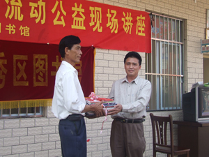 活动现场,首先青秀区图书馆为“农家书屋”捐赠了价值2000多元的图书物质(期刊、科普光碟、报刊架);接着,南宁市图书馆“绿城讲坛”请来了广西大学农科院唐教授进行了农业技术知识讲座,热情解答有关农业生产各种咨询。最后,开展了深受农民朋友喜爱的有奖猜谜和抛圈活动,此次活动受到了群众的热烈欢迎,我馆干部向农民朋友准备的宣讲的资料和科学农业种养的资,不到一个小时就被争强一空,场面气氛十分活跃。