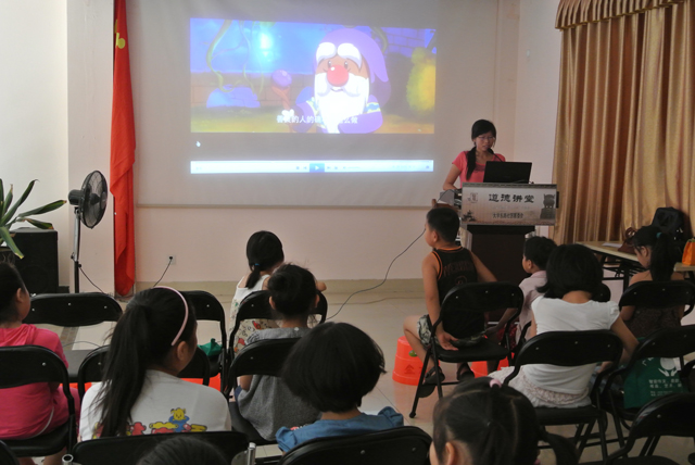当天,在大学东路片区红色之家关爱农民工子女志愿服务基地放映儿童影片《海妖宝藏》,影片中小主人公英勇、智谋、顽强的奋斗精神强烈地震撼了现场的农民工子女,电影放映后,还为小朋友设置小提问和小游戏进行了互动,胜出的小朋友可以还得到心仪的小礼品。