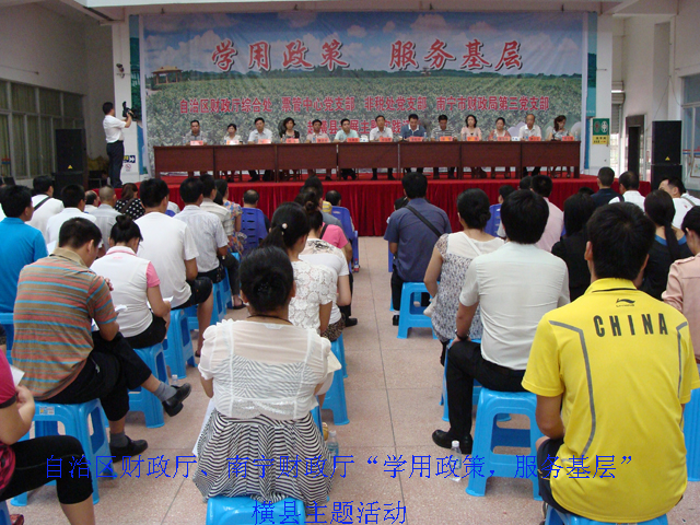 新建活动舞台设置在图书馆大厅内,目前拥有观众座位500个,最多可容800人左右,舞台采用钢架结构,红地毯装饰,观众座椅为彩色塑料凳,整个舞台场面设计新颖、美观,适合举办中小型读书活动。8月4日,新建活动舞台已投入使用,成功接待自治区财政厅、南宁市财政局“学用政策,服务基层”横县主题活动。为主办单位提供舒适的活动环境,深受上级领导的好评。