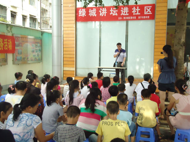 当天,活动主要以“亲情相伴,听一场讲座”和“亲情相伴,读一本好书”两方面进行。讲座与南宁市图书馆“绿城讲坛”合作,邀请了南宁市急救中心专家文育平,以安全防护教育为内容进行现场讲解,情景模拟,互动等环节让农民工子女学习公共安全及自护等知识。在讲座过程中,专家一边讲解一边请同事示范,并请小朋友和家长上台练习,让大家在短时间内初步掌握“心肺复苏技术”;另外,通过南宁市图书馆的“汽车图书馆”开进社区,推荐科普知识、天文地理、励意故事、历史文化等书箱给农民工家庭,组织农民工家长与孩子共同阅读。活动期间我馆还通过设计小提问和小游戏的形式引导孩子学习和畅谈读后感,寓教于乐。通过此次活动,让农民工家庭的父母坐下来和子女一同参与,增进了农民工家庭的亲子关系,普及了尊敬长辈、团结互助的人生观和价值观,对农民工子女培养积极健康的生活态度产生了促进作用。