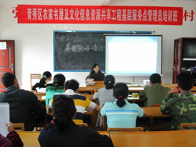 农家书屋是农村基层公共文化最基础的一块活动阵地,管理和使用好农家书屋这一农村文化阵地是一项复杂的文化系统工程。为深入推动青秀区农家书屋工程建设,提高农家书屋管理人员业务素质,保证农家书屋顺利运营,增强管理人员的责任意识、服务意识,从而更好地服务广大人民群众。9月25日至29日,在南宁市图书馆学会的指导下,青秀区图书馆组织开展了一期为期4天的业务培训班,培训对象为辖区所属的4个乡镇共享工程基层服务点以及“农家书屋”管理员,每个乡镇进行1天的培训,来自4个乡镇37个村共享工程基层服务点、农家书屋管理员等100余人参加了此次培训班。