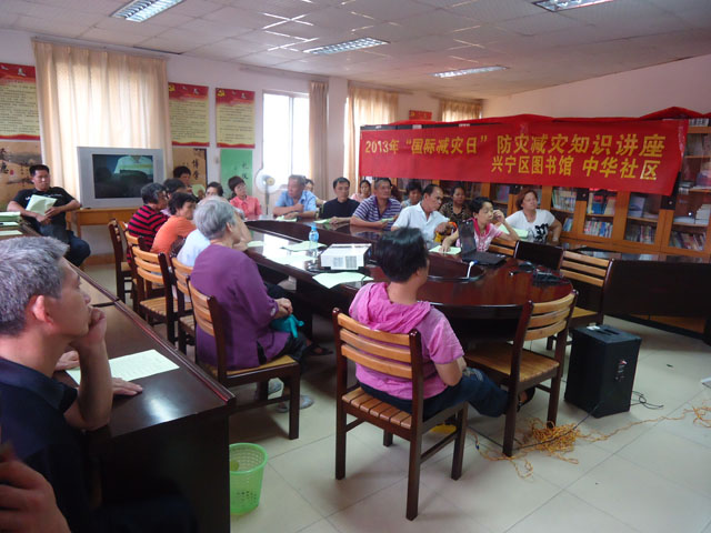当天上午,南宁市植保植检站的农业专家徐盛刚受邀到五塘镇沙平村为村民举办了一场农科生产知识讲座——“经济作物病虫害防治知识”,讲解当前经济作物病虫害的预防、控制及农作物种植管理知识,吸引了近百名村民前来参加。下午,兴宁区图书馆又深入中华社区,联合中华社区居委会为社区居民举办了一场主题为“2013年‘国际减灾日’防灾减灾知识”的讲座,为第24个国际减灾日营造良好宣传氛围。据了解,今年“国际减灾日”主题是“面临灾害风险的残疾人士”。残疾人是典型的社会弱势群体,也是减灾救灾工作的重点关注对象。通过此次活动,极大地提高他们的防灾减灾意识和自救互救技能。