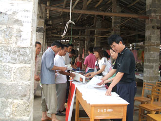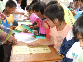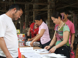 在活动中把4500多册图书,用卖货的货架摆开任农民自由挑选着看,还特意为瑶山的孩子们举行“读书”有奖猜谜活动,让孩子们提前过个有意义的“六一”儿童节,活动的开展不仅吸引着所有赶圩的群众也吸引了在地滩非法摆卖“六合彩”马底的农民全部都参与到我们的活动来,在活动中全体工作人员热情高涨,有的为读者推介好书,有的解答一般咨询,有的给瑶族群众发放科技种养资料,活动从上午10点到下午5点半,长达7个半小时,参加活动的群众达500多人次。本次活动深受瑶山农民群众的欢迎。活动结束后,数名瑶族群众依依不舍地为我们送行,喊出最亲切的一瑶语,“ 希望盟塞斗”(希望你们再来的意思)