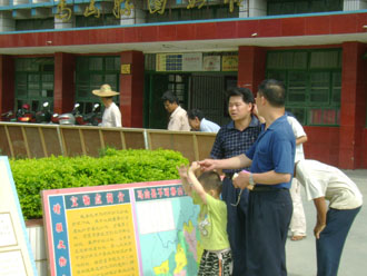 5月30日,马山县图书馆服务宣传周活动在县人民广场拉开序幕。我们在广场上悬挂了以“保护文化遗产,弘扬民族文化,建设和谐文明新马山”为主题的横幅、标语,大力宣传保护民族文化遗产的重要意义,弘扬爱国主义民族精神。县图书馆的工作人员走上街头,向群众发放宣传资料,宣传《广西壮族自治区民族民间传统文化保护条例》等法律、法规。并在图书馆门前和广场周围,摆放文化遗产保护宣传板报、设立马山县部分馆藏文物图片展和图书馆服务宣传咨询点。通过开展这一系列丰富多彩的服务宣传活动,让群众品尝到了丰盛的科学文化大餐。当晚,县图书馆还利用广西“共享工程”配送的投影机,在人民广场有针对性地为群众播放《广西开展文物保护和普查记述》、《南宁市非物质文化遗产专场晚会》、《马山—撼天动地壮鼓擂》等录像,让文化遗产保护工作深入人心。