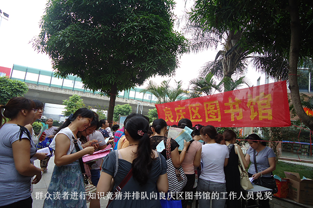 在活动中,良庆区图书馆利用宣传板报、横额、知识竞猜、发放宣传资料等形式宣传推介。良庆区图书馆从2013年下半年闭馆至今,在没有找到新馆址重新开馆的情况下,调整工作重心,把服务工作主要辐射到乡镇村、社区、学校。今年5月,图书馆努力争取到国家图书馆支持的2万册图书,在增加馆藏的同时也对建立新图书流通站以及更新已建流通站的图书起到了极大的作用。同时图书馆践行免费开放精神,努力打造“良庆文化讲堂”品牌。通过此次的宣传,让更多市民感受到我们图书馆人热心图书馆工作,积极服务广大市民。良庆区图书馆在文化惠民工程上出实招、办实事,让文化惠及广大群众,受到市民的热烈欢迎。