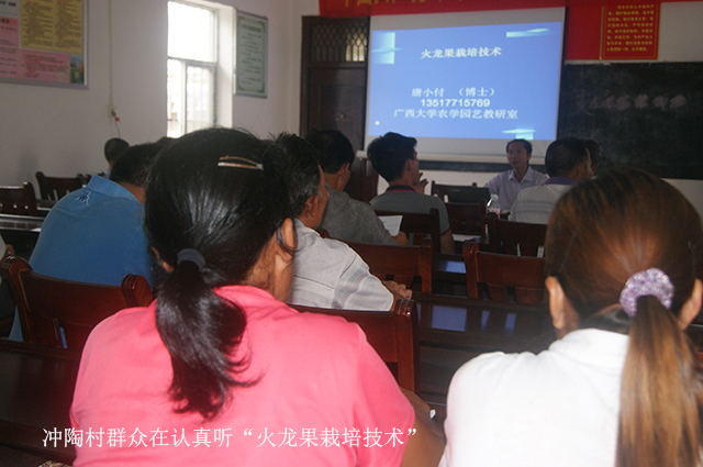 6月23日,良庆区图书馆在城区文体局杨芝维局长及李建志副局长率领下为那马镇冲陶村带去近400册图书建立了图书流通站,并请广西大学农科专家唐小付教授给村民讲授火龙果栽培种植技术,受到村民的热烈欢迎。