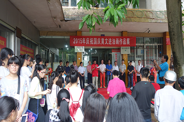 秋风送爽、桂蕊飘香。为充分展示美丽武鸣建设新成就,庆祝新中国成立66周年,9月26日上午,由武鸣县图书馆和文化馆联合主办、武鸣县美术家协会和武鸣中学协办的“2015年庆祝国庆黄文进油画作品展”在县图书馆一楼展厅开展。香港文化艺术交流协会主席黄忠良、广西美术出版社杨勇、南宁市教科所卢喜夫等领导参加了开展仪式。展览时间为9月26日至10月8日。