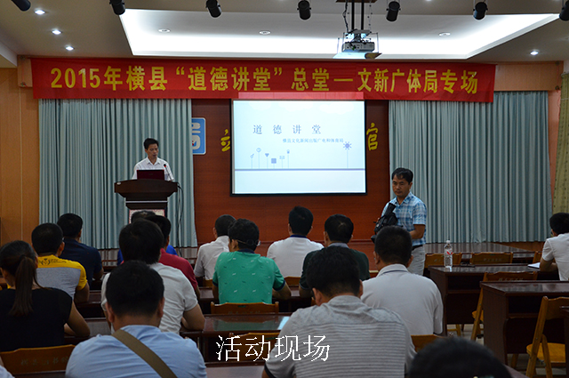9月25日,由横县文化新闻广播影视和体育局主办,横县图书馆协办的道德讲堂故事会在横县图书馆举行。整场道德讲堂内容丰富充实,不仅有身边好人的故事,诵读经典等环节,还播放了广西电视台拍摄的短片《走基层:“抗艾先锋”杜丽群》,县文新广体局干部职工和广大读者近100人参与了活动。