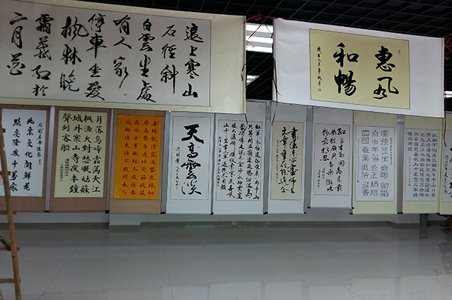 为庆祝中华人民共和国66周年华诞,隆安县图书馆举行“庆国庆书法比赛及获奖作品展览”活动。活动共收到156件作品,其中毛笔类书法作品135件;硬笔类书法作品21件。县图书馆组织了评委会对参赛作品进行评选,评出毛笔类一等奖2名,二等奖3名,3等奖2名,优秀奖26名;硬笔类一等奖2名,二等奖空缺,三等奖3名,优秀奖7名。此次展出的近60件书法作品既风格多异又植根传统,既取法高古又充满现代美感,是一次高品位的艺术盛宴,吸引了众多读者群众到馆观展。