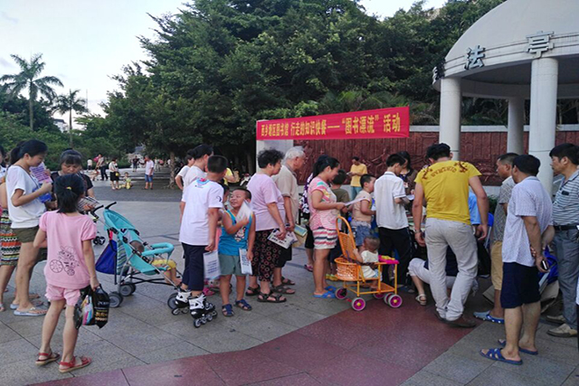 6月18下午6时许,为协办2016年南宁市外来务工人员文化艺术节西乡塘区专场演出,西乡塘区图书馆在友爱广场的演唱现场悬挂了图书馆服务宣传海报20幅,横幅5条,吸引了数百名群众驻足围观。晚上8时,在文艺演出进行的同时,图书馆还举办了有奖知识竞答活动。