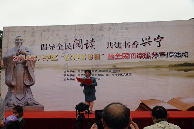 “知识因传播而美丽,世界因阅读而精彩”,4月23日,在第21个世界读书日来临之际,为倡导全民阅读,营造浓厚的读书氛围,兴宁区文体局以“倡导全民阅读 共建书香兴宁”为主题,在广西花鸟交易市场隆重举行了世界读书日全民阅读服务宣传活动,共吸引市民群众1000余人参加。本次活动由兴宁区文体局主办,兴宁区图书馆、兴宁区文化馆承办,广西花鸟交易市场协办。