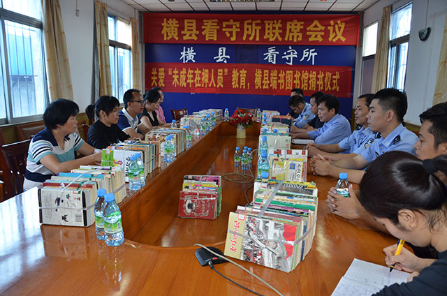 为丰富在拘人员精神文化生活,推进公共文化服务和看守所管理机制创新工作,11月22日,横县端书图书馆将1000册图书送进县看守所,本次送书活动得到看守所领导和干部职工的热烈欢迎。