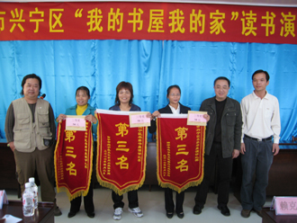 据兴宁区图书馆馆长滕钰介绍,在兴宁区所辖的40个行政村中,都设有农家书屋,目前为止已有26个村拥有了近千册的图书收藏,目前还有14个村也完成了书屋的配套设施建设,书籍也将与近月内陆续下发到各村。通过本次活动的开展,旨在鼓励、引导农民走进农家书屋,多读书,读好书,借助阅读讲演活动搭建一个展示自我、提升自我、激发农民群众学习科学知识、享受精神文化的平台;同时积极宣传农家书屋建设成果,扩大农家书屋的社会影响,增进社会各界对农家书屋的了解,争取社会各界对农家书屋更多的关心和支持;唤起更多人对“三农”问题给予关注,对农民朋友给予关爱,号召全社会共同努力,推动城乡一体化建设,共筑农村的美好明天。