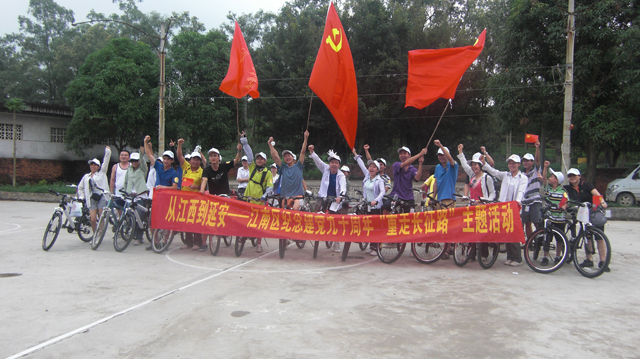 本次活动活动从江南区江西镇政府出发,以自行车骑行的方式进行,全程模拟长征路上血战湘江、四渡赤水、强渡大渡河、飞夺泸定桥等浴血情景,感受爬雪山、过草地的艰辛困苦,最终在江南区延安镇胜利会师,路程总长为50多公里。本次活动得到了广大书友的广泛支持和好评;参加本次活动的成员来自城区内机关单位、公司企业、大中院校等等各个领域,其中年纪最大的达到了53岁,年纪最小仅有10岁。