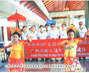 5月10日至24日,由自治区副主席张文学率领的走进东盟——“中国联通”广西旅游大篷车,载着4800万壮乡人民的深情厚谊,唱着甜美的山歌,接连“开进”泰国首都曼谷、新加坡、马来西亚首都吉隆坡、印度尼西亚首都雅加达和巴厘岛,最后经香港返回南宁。行程3万多公里,拜访了中国驻外大使馆、各国旅游部、航空公司、工商部、广西会馆等,考察了部分精品旅游景点,堪称点多,面广,线长,成效大。