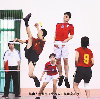 阮德海炫耀地说,越南的跆拳道、武术在世界上具有影响力。在釜山亚运会上,越南跆拳道和武术运动员表现优异,摘取多枚金牌。近年来,乒乓球、排球、羽毛球、藤球等球类项目在越南也非常普及,越南经济还不发达,越南人喜爱的运动类型都是既省钱又简便的。足球和毽子之所以受欢迎,因为它们在哪里都可以玩,不需要固定的场合,运动量又大,健身效果好。阮德海告诉记者,由于场地和器材的问题,乒乓球、篮球、排球在农村不怎么普及,倒是在城市很常见。