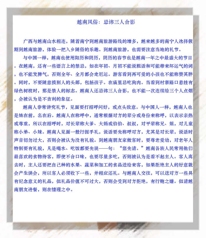 越南风俗:忌讳三人合影