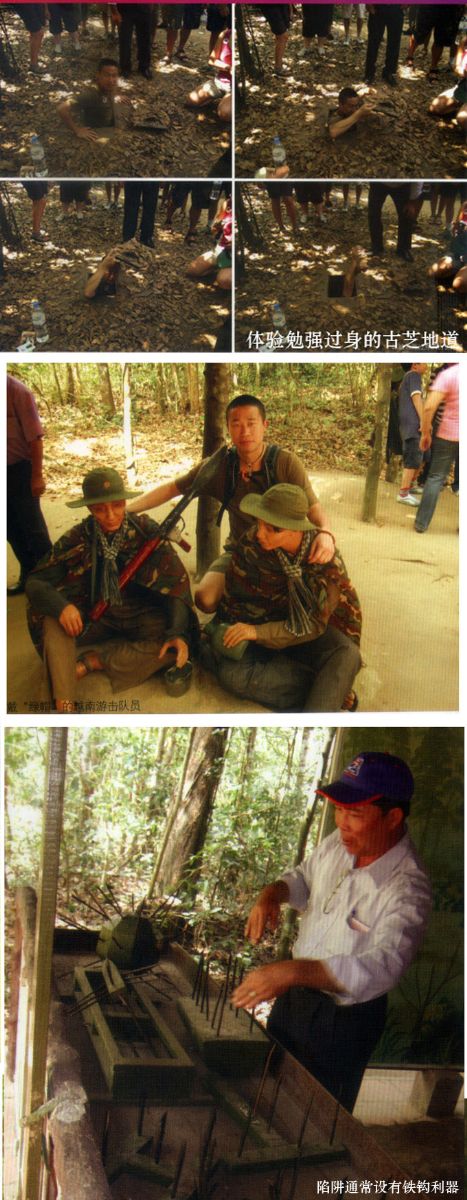 到越南胡志明市的游客大多会去古芝(Cu Chi)隧道,这条隧道和古芝这个地方是当年越战时最重要的一个游击战根据地。早就在纪录片里看到过,在西贡与柬埔寨边境接壤的一片土地上,越南人民曾经取经于中国游击队,在古芝挖起了地道,地道连绵几十公里,当时每家每户均群策群力。最特别的是,在越战期间挖掘的这些地道出入口都特别狭小,完全根据越南人瘦小的个子而设计,吃惯了汉堡牛排的美国大兵哪里钻得进去,因此经常被冷枪打得够呛。兴之所至,我一定要去看看。