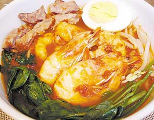 经朋友介绍,在长湖路一家兼营马来西亚菜的餐厅,记者与马来西亚美食大厨蔡齐生见面。他为记者介绍了自己最拿手,也最喜欢的大马美食辣虾面。 蔡齐生说,马来西亚辣虾面(laska)是新加坡马来西亚一带流行的民食,也是娘惹菜的一种。在各种旅游广告中都能见到它的身影。就如同我们四川的担担面一样,每个大厨做出来的味道都不一样,想吃好吃的马来西亚辣虾面,找一个好厨师是关键。