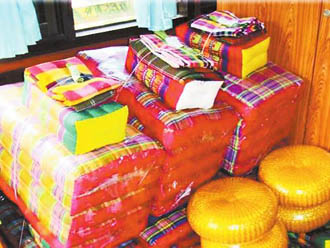 在泰国南部的一些地方,经常可以看到一些人围着一个大树吹吹打打,欢歌曼舞,原来是当地男子在举行与大树成亲的仪式。别瞧成亲的对象是不会说话的树,但仪式却与真正的男女结婚仪式一样隆重热闹。同大树结婚,男方送的彩礼盛在银制的大碗里,称为“龛玛花”或“龛玛菜”。龛玛花通常是25个槟榔果,龛玛菜则多为人们喜爱的点心 、糖果和枕头 、席子及蜡烛等。