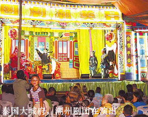 平日里到了晚上就很安静的古城区那几天也格外沸腾。在灶蓬市场,各路人马纷纷出来搭台唱戏,有传统的中国乐器演奏会;有泰国歌手用略显生硬的中文演唱《甜蜜蜜》;还有潮州剧团,演的是泰国人耳熟能详的包青天的故事,乡土气息甚浓,格外吸引人。