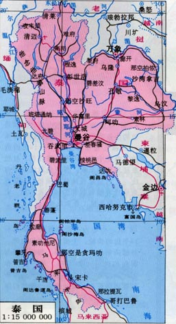 泰国(原名暹罗)位于中南半岛的中部,国土面积51万平方公里,海岸线全长2535公里。人口6258万(2002年3月统计数字)。有30多个民族,泰族是主体民族,占全国总人口成52.6%,老族占26.9%,马来族占4%,高棉族占1%。泰语为国语,佛教为国教。