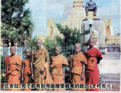 在老挝,大部分男性在5岁左右就被送进寺院当novice,跟和尚学习佛法、英语、法语和其他知识。如果到他们20岁的时候还不离开寺院,就直接升为monk,也就是正式的和尚。不过大部分人到那时候都会还俗。对于老挝男人来说,进寺庙当novice就像上学,是一个受教育和成长的过程,如果没当过和尚,简直就是人生的一大憾事。