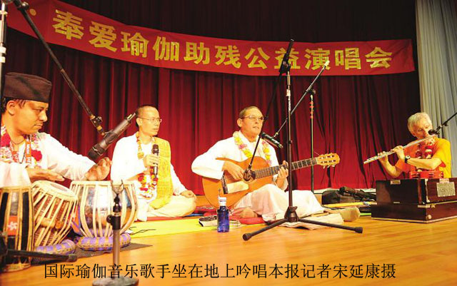 鼓点时而轻缓时而明快,搭配上动听的吉他旋律和悠扬的竹笛,阿特玛先生低吟浅唱着梵文歌曲。虽然语言不通,但音乐无国界,来自异域的音乐令人着迷,台下一些盲人朋友更不自觉地随着音乐晃动身体。瑜伽作为一种古老的文化,其音乐以舒缓、清雅为主,可令人舒缓心情,这场瑜伽音乐演唱会也让听众们感受了一次宁静的心灵之旅。